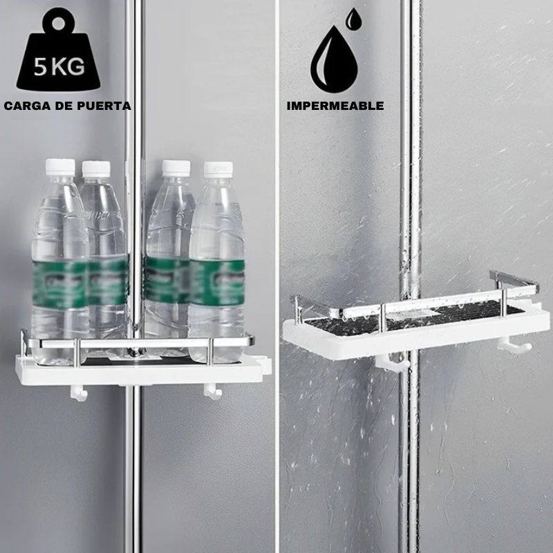 Nuestra estantería se fija a la barra de la ducha con sus extremos universales, para una instalación sencilla y rápida en todas las barras de ducha.