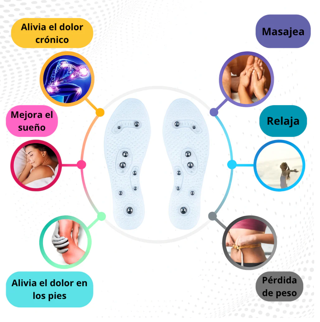 Las plantillas magnéticas son un método sencillo y eficaz para dar un suave masaje a tus pies, ayudando a reducir el cansancio y los dolores musculares tanto en pies como en piernas.